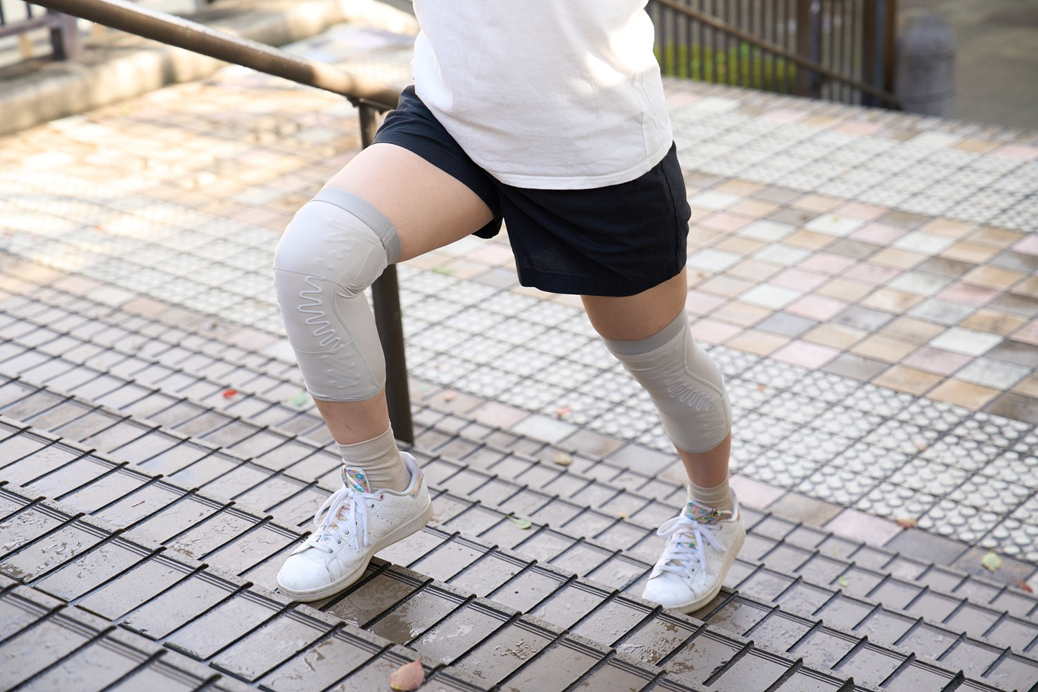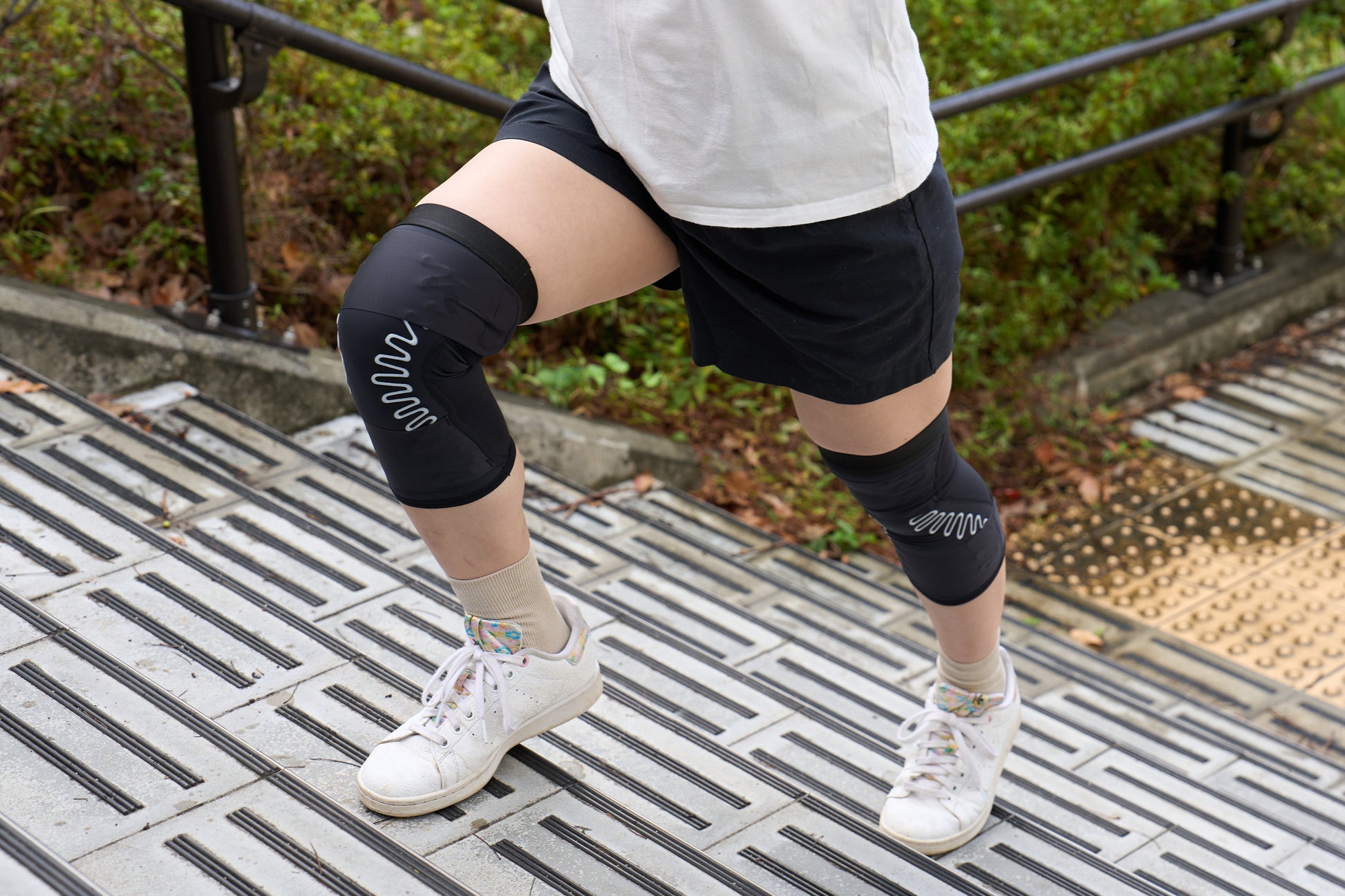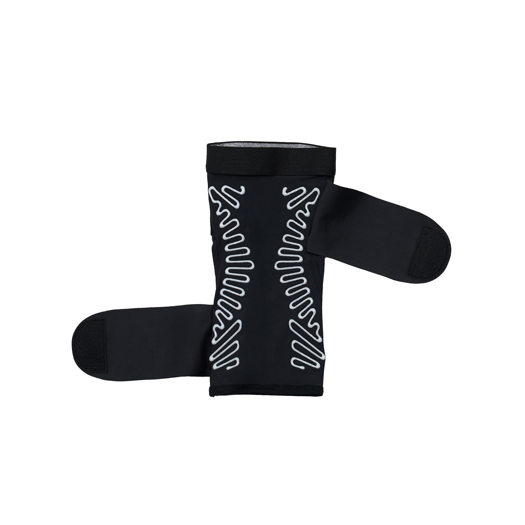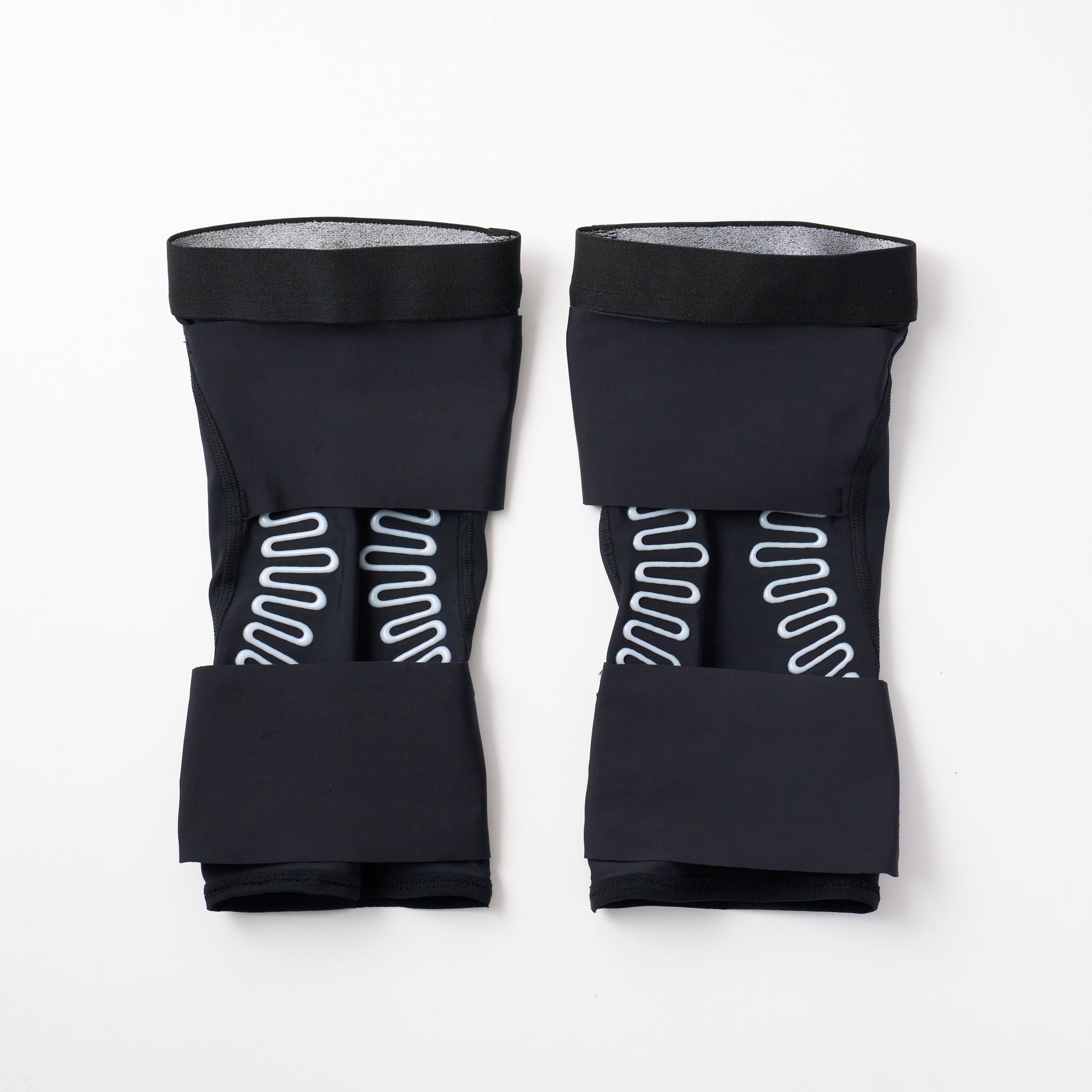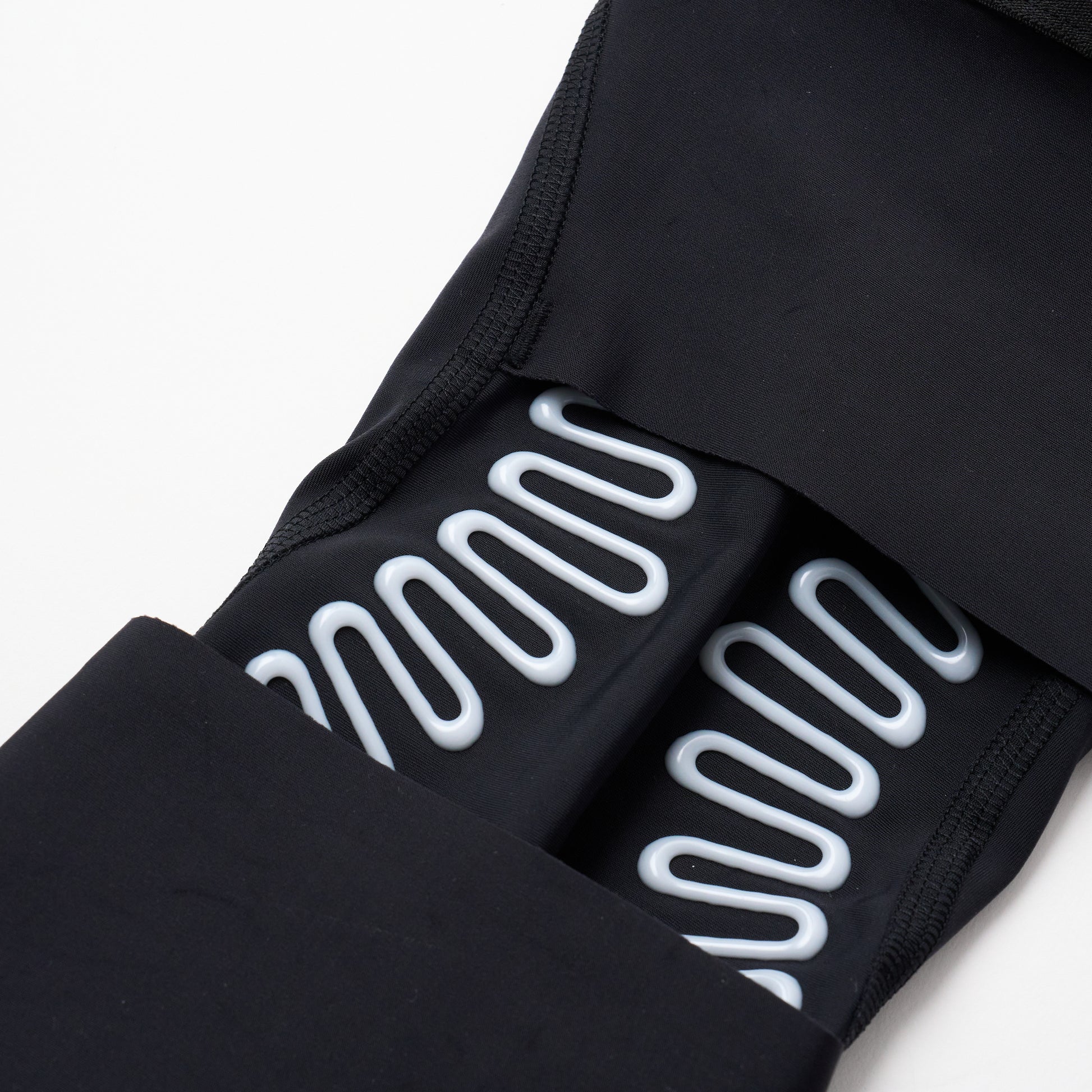 ・樹脂ボーンは生地に追従するため、時に曲げてもフィットし、膝の視点に配置することで、靱帯のような役割をして、膝の内反・外反を防ぎ、膝のグラツキを支えます